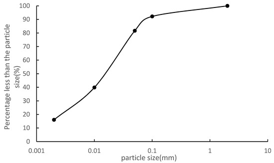 Peanut and rapeseed crops were rotated in the test area. Rape cultivation was planted in early October, and rapeseed was harvested at the end of April. After the rapeseed was harvested, the land was cultivated, and peanuts were planted in accordance with local planting habits. The peanut variety is pure autumn variety 1016. Peanuts are sown three to a hole. The plant spacing is 15–17 cm, and the row spacing is 30–33 cm. At the time of sowing, base fertilizer, organic calcium magnesium phosphate fertilizer (750 kg/hm2), and compound fertilizer (375 kg/hm2) (the N:P: K ratio is 15:15:15) were applied. During the flowering stage, 75 kg/hm2 urea and 37.5 kg/hm2 potassium chloride were applied. Bare plots were plowed and fertilized similar to the other plots. After each rainfall event, the sediment in the runoff bucket was stirred evenly, a 500 mL muddy water sample was collected to determine the sand content, and another 500 mL muddy water runoff sample was collected to determine the sediment particle composition.