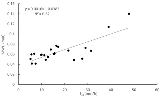Relationship between I30 rainfall and MWD of eroded sediment.
