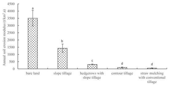 Average annual soil erosion moduli under different treatments.