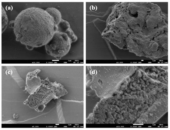 Scanning electron microscopy (SEM) of coal fly ash and synthetic zeolite: (a) coal fly ash; (b–d) synthetic zeolite.