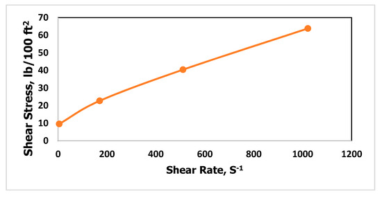 The drilling fluid’s rheological properties were tested at 120 °F, as shown in Figure 1. The plastic viscosity was 18.9 cP and the yield point was found to be 16.7 lb/100 ft2.