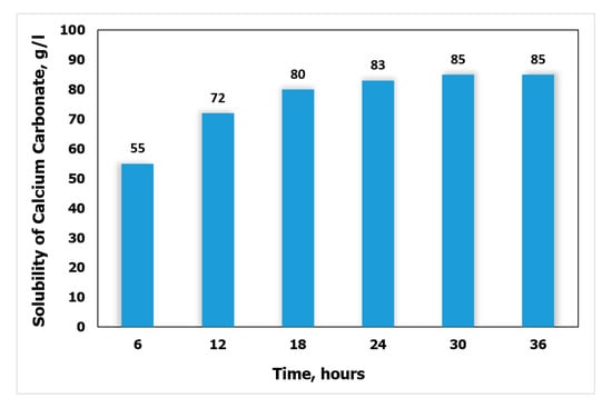Calcium carbonate solubility with time at 212 °F.