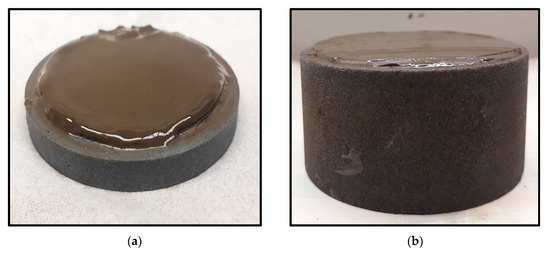 Generated filter cake on (a) the ceramic disc and (b) the sandstone core.