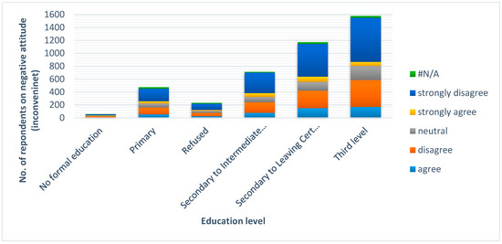 Figure 4 shows the attitude of the respondents on education levels that reacted to the statement “It is too inconvenient to reduce our usage of electricity”.