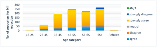 Figure 10 shows the attitude of the respondents on age categories that reacted post-trail to the statement “I am interested in changing the way I use electricity if it reduces the electricity bill”. Most of them strongly agreed or agreed.