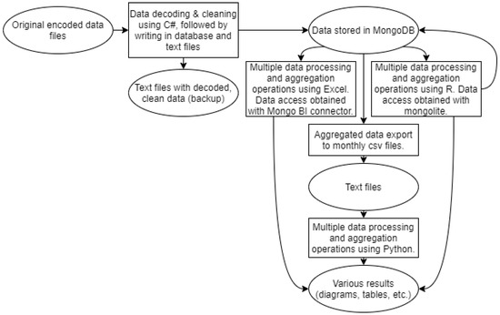 MongoDB was chosen to be used as a data storage solution. Combinations of various languages, techniques and software applications were used, in order to maximize data analysis capabilities (the C#, R, and Python languages, SQL queries and MongoDB aggregations, .csv files, .xls spreadsheets, SPSS statistical analysis).