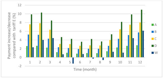 | Payment with a ToU tariff (A, B, C, D or W) | |
