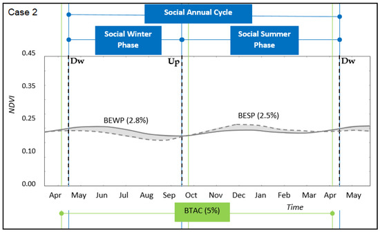 | Study Cases | BESP | BEWP | BTAC % | Dates of Shift Between Ecological Phases | Starting and Ending Dates of Movement Transitions | Total Time Spent for Transitions | ||||