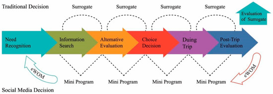 The simplified model of mini programs replacing surrogates in the decision-making process (Solomon, 1986). E-WOM: electronic word of mouth.