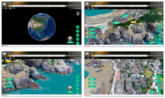 Figure 7 demonstrates 3D images of a tourist destination, so that non-WeChat users and domestic and foreign tourists who prefer using a PC can access the web through a link. Since this study mainly discusses the innovative use of combining oblique photography technology with social media on mobile devices, the computer version will not be discussed in detail.