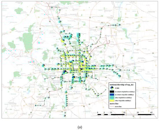 The research of Song and other scholars shows that although individual travel history is different, individual travel follows a simple and repeatable mode [,,], and has a high predictability [], which also provides a scientific basis for applying smart card data into analysis. By using smart card data mining, different travel modes can be analyzed: commuting, shopping, visiting relatives, spring outing, outing, etc. At present, the research mainly focuses on commuting trips, passengers making roundtrips per day, but neglects single trips.