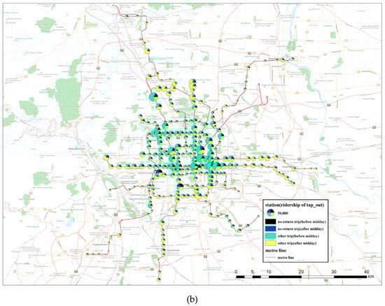 In recent decades, China’s economy has developed rapidly, but at the same time, the disease of big cities is becoming more and more serious in Beijing and other metropolises. The number of motor vehicles in cities is huge, and urban roads are saturated. The air quality is also getting worse []; city managers and researchers have been looking for many different ways to solve these problems. Urban public transport, especially subway, with its characteristics of punctuality, large traffic volume, energy conservation, and environmental protection, has been strongly supported and rapidly constructed by the government in big cities. In order to improve the operation efficiency of urban public transport, many scholars have established different methods and perspectives to explore the travel patterns in smart card data [,,,,], and gave reasonable and practical suggestions for the transport agencies to improve public transport planning and formulate appropriate operation strategies. The essential of better planning and operation is the operation data generated by public transport. The traditional research used questionnaire or census data as data sources, which were expensive to gather, insufficient, and maybe unreliable. Compared with traditional methods, the smart card automatic fare collection system can obtain larger samples and analyze travel behavior in a longer term []; it provides an ideal method for daily urban public transport data collection; the use of urban public transport automatic fare collection systems is becoming more and more common worldwide []. As Pelletier predicted [], smart card has become the most widely used payment method of public transportation. At present, more and more researchers are committed to utilizing urban public transport big data in various fields, including urban public transport studies.