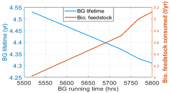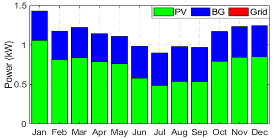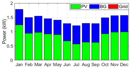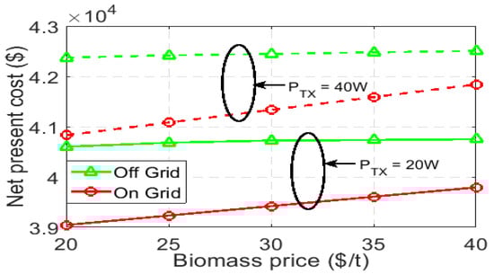 For the hybrid solar PV and BG powered system, the net present cost also contains the fuel cost (FC), which can be formulated as follows [58]