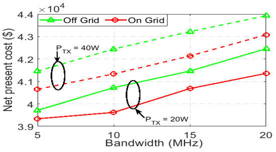 Comparison of NPC between on-grid and off-grid under different system BW.