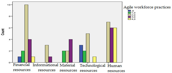 Hypothesis: if human resources are ranked in the first position as the most important resource, then they positively influence the extent to which practices to increase workforce agility have been adopted in independent decision-making organizations.