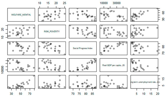 To test our first hypothesis, we analyzed the correlation in order to measure the intensity and significance of the relationship between the welfare mentality and: The economic dimension of sustainable development, measured by real GDP per capita and the long-term unemployment rate, the social and environmental dimensions of the sustainable development of a state, measured by the Social Progress Index. The consistency of the relationships was verified by controlling for the risk of poverty as a measure for the social vulnerability of a country. The considered indicators cover all aspects of sustainable development, i.e., they cover all 17 goals from the 2030 Agenda for Sustainable Development [8]. Real GDP per capita and long-term unemployment rate capture outcomes related to Goal 8-Decent work and economic growth [67], while the Social Progress Index captures outcomes related to the other 16 of the 17 SDGs [68].