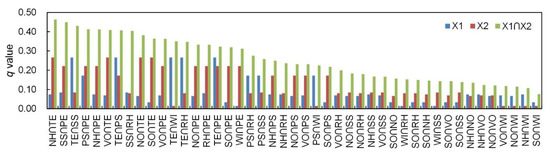 In the formula, h = 1,…, L, which classifies X or Y; N and Nh are the numbers of the whole region and categories in classification h; σ2 and σh2 are the Y value of the whole region and the variance of strata h, respectively. SST and SSW are the total variance of the whole region and the sum of variance within the strata, respectively. Greater values of q (0–1) indicate more spatial variation in Y. If the classification is based on X, a higher q value explains the influence of X on Y (i.e., explaining power: 100 × q%).