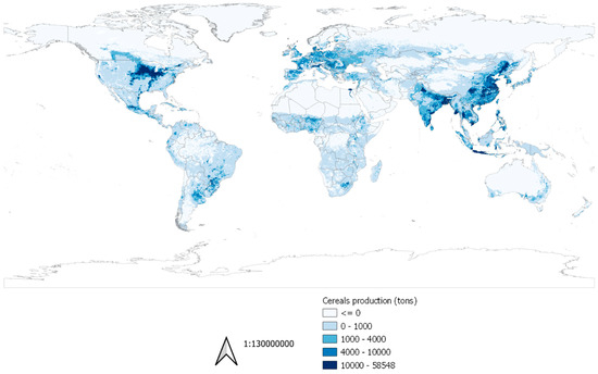 - Monfreda, C.; Ramankutty, N.; Foley, J.A. Farming the planet: 2. Geographic distribution of crop areas, yields, physiological types, and net primary production in the year 2000. Glob. Biogeochem. CY 2008, 22. [Google Scholar] [CrossRef]