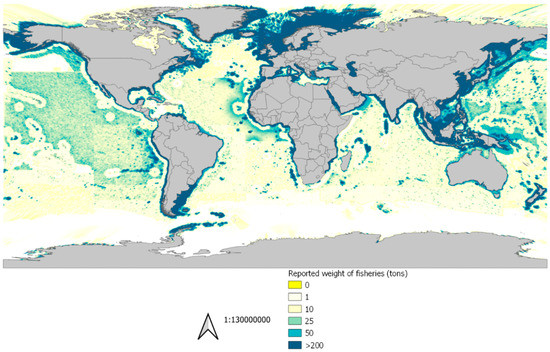 - Watson, R.A. A database of global marine commercial, small-scale, illegal and unreported fisheries catch 1950–2014. Sci. Data 2017, 4, 170039. [Google Scholar] [CrossRef]