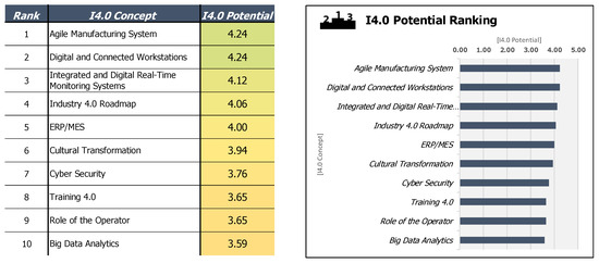 In the next step, we analyzed the data to determine the average potential of the Industry 4.0 concepts according to the participating SMEs in the field study (see Figure 8).
