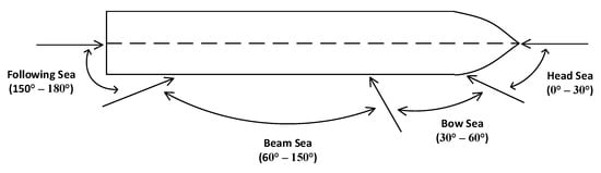 where is the wind direction angle (with respect to the True North) and is the ship heading angle (with respect to the True North). Here, the wave direction angle is assumed to be the same as the wind direction angle, which is true in most instances of surface waves [47].