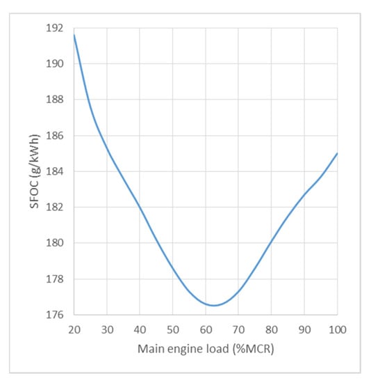 where is the Specific Fuel Oil Consumption (SFOC) of the ship’s main engine in g/kWh, which varies with the main engine load and can be obtained from the main engine performance documents.
