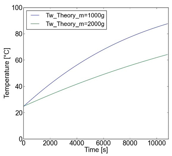 The water tanks used in these experiments were made of styrene foam (outer size: 183 × 248 × 173 mm, inner size: 130 × 198 × 125 mm). This type of water tank is used in order to reduce the water’s heat loss. The thermal conductivity of the styrene foam is very low, and a lid is put on the water tank so the temperature inside the tank is maintained constantly for a long time. However, the water tank is not completely sealed, and a hole is made in the lid of the water tank in order to measure the water temperature by the thermocouple connected to a display. Although the hole is covered by glass wool in the experiment, it is not enough to prevent the movement of the air. Therefore, the heat loss from the water tank must be considered in the experiment. Since the thermal conductivity of the styrene foam is very low and the temperature of the water in the experiment is not very high, it is assumed that the convective heat loss is the dominant heat loss mechanism.