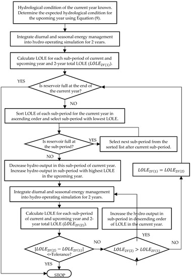 Flow chart for year to year energy management methodology. LOLE: Loss of load expectation.
