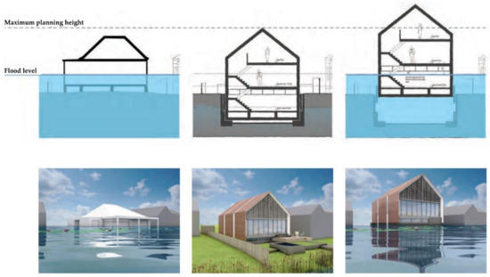 Figure 6). “Floating houses” are different from “amphibious houses” in that they are completely water-based rather than land-based [