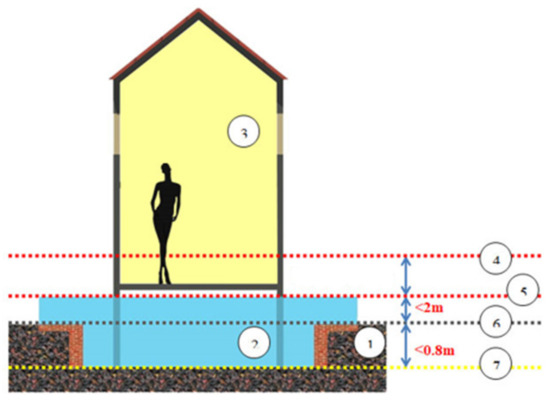 13]. When there is no flood in the area, this semi-basement can be used for temporary storage, water supply and drainage systems, and private transportation, such as bicycles and motorcycles.