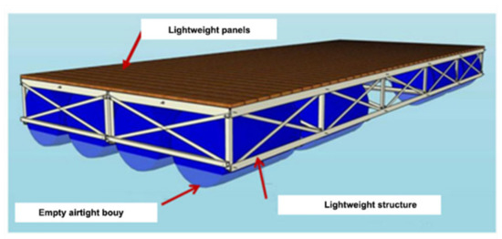 20]. It was designed on fixed but separated foundations to be able to float during a flood period, as can be seen in