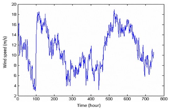 Numerous sets of hybrid models are installed to estimate wind energy [96]. The nature of the combined model can be (i) statistical, and physical approaches of the mix, (ii) short-medium range approaches, (iii) alternative statistical approaches in combination. The goal of the hybrid approach is to benefit from each method and gain the best predictive performance, globally. For example, in the autoregressive models with exogenous inputs (ARX), more than a few statistical approaches are managed to determine the best results between online measurements and weather forecasts. Generally, system participants can be compared by the history of predictions through actual available output data to track the wind performance of prediction measurement tools. It is essential to evaluate the performance of models related to several criteria, especially the use of RMSE and IEA predictions [97,98]. Figure 7 depicts the variation of wind speed over time (hours), while Figure 8 illustrates the atmospheric effects on the wind-based doubly fed induction generator (DFIG), producing energy and related control schemes for a sustainable system.