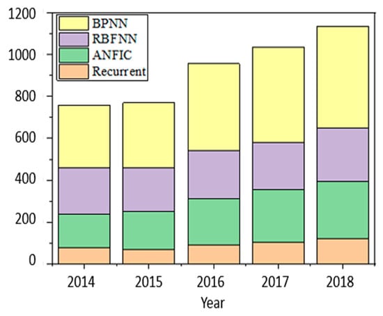 Artificial neural networks are extensively used in many areas of application. One of the most popular is prediction, which is described as a process of predicting future trends or events. Besides, forecasts in a variety of areas, such as the prediction of weather, asset prices, and economic downturn forecasts, are fairly common [31,116]. It is essential to emphasize that the predictions do not start with artificial neural networks since traditionally, many analysis tools have been used to predict future trends. Examples of algorithms are the Box–Jenkins model and the regression model. However, the use of artificial neural networks as an essential prediction tool is increasing. A neural network is an information method with which the relationships between different data can track and determined internally. Also, academic and industrial researchers have used ANN for a variety of predictive purposes, as it can compare self-study mechanisms between expected and actual results. The artificial neural network can teach itself, and its weighting factors can be adjusted to reduce future errors between the prediction results and the actual results, which facilitates its extensive application in prediction.