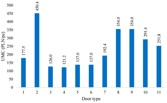 Unit material cost (UMC) values of all door types.