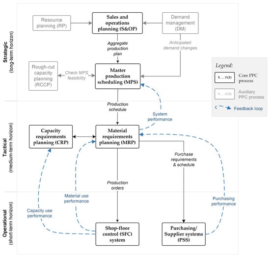 The production planning control (PPC) system levels and processes (adapted from [,,]).