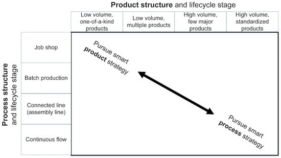 - Hayes, R.H.; Wheelwright, S.C. Link Manufacturing Process and Product Life Cycles. Harv. Bus. Rev. 1979, 57, 133–140. [Google Scholar]