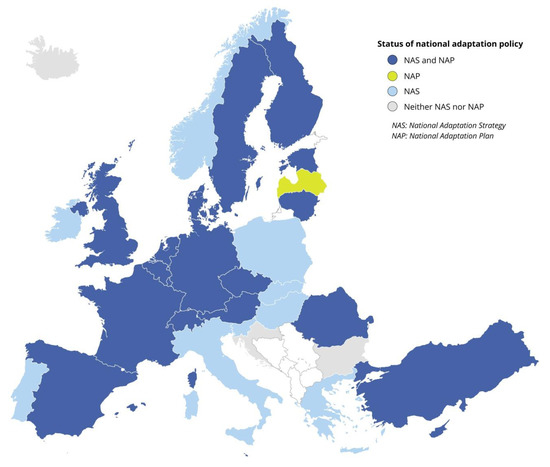 Overview of National Adaptation Strategies and Plans in EU Member and non-Member states. Source: European Environment Agency (EEA) [14]. Figure created on 31 July 2019 and published on 3 December 2019. Original image edited by the Authors.