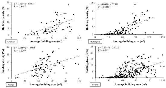 Figure 12. Scatter diagram of the relationship between building density and average building area. - (5)