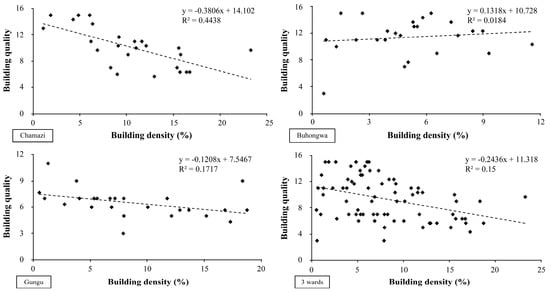 Figure 13. Scatter diagram of the relationship between building density and building quality.