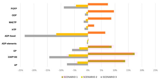 | Photochemical oxidant formation potential (POFP) | 7.15 × 10−5 | 2.82 × 10−5 | 39% | 3.04 × 10−5 | 3.08 × 10−4 | 6.45 × 10−5 | 4.2810−5 | 7.15 × 10−5 |