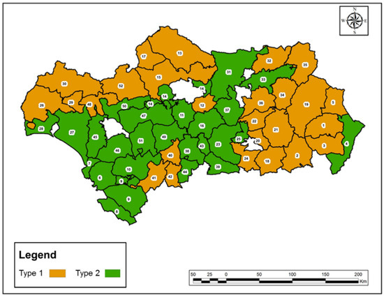 The results derived from the application of the methodology reveal some elements that promote processes of territorial cohesion in rural Andalusia. Specifically, in type 1 territories, the cohesion and development of their counties should be based on the diversification of the sources of income of the local population, taking advantage of the various opportunities offered by their natural and cultural heritage. This diversification should be based on innovation and entrepreneurship, including in the agricultural sector and the food industry, boosting local production activities, and seeking new value chains.