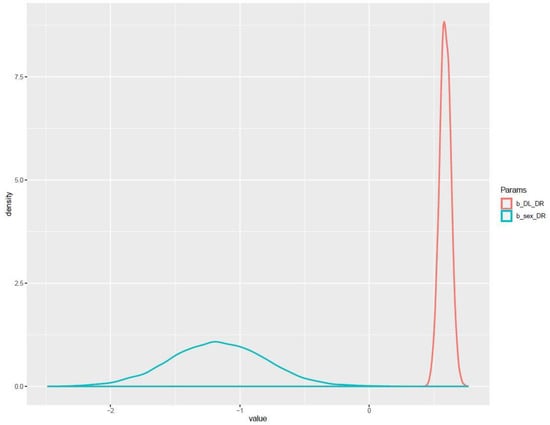 Figure 6 displays the correlation between students’ digital literacy, gender, and digital resilience. The distribution of b_DL_DR is narrow (mean = 0.59), with an excellent credibility range, suggesting a positive association between the students’ digital literacy and resilience.