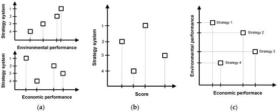 There are different methods to visualize and interpret the results obtained (see Figure 4). The first option is separate visualization, where the environmental and economic impacts are shown separately [22,32]. Although the results are clearer to read, this option makes decision-making from a global perspective difficult. The second option is based on a weighting system, where a percentage value is applied to each indicator (environmental and economic), obtaining a final score that reflects the overall behaviour of each refurbishment strategy [27,77]. In this case, the different weighting criteria can cause problems of subjectivity when prioritizing refurbishment strategies, as the weighting system is directly linked to a subjective process. Finally, the third option is the unified system [31,38]. This system allows the environmental and economic impacts to be shown in a single study (but separately), while avoiding the use of weighting systems.