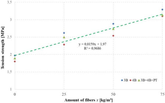 Tensile strength (3B—three-point test, 4B—four-point test, 3B + 4B + PT—three-point, four-point test, and split tensile).