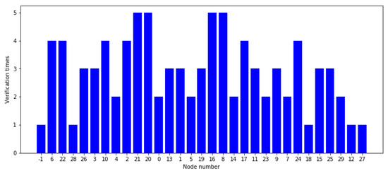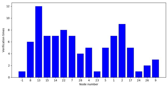 The number of verification candidates of PoG is set as 10. According to the record of generation data submitted in the last round, top 10 prosumer nodes with highest generation become candidates, and a verifier is randomly selected among them. Right after the initiation of the system, before prosumer nodes submitting generation data, there is not any generation record. To bootstrap the system, it is assumed that the community committee conducts the first round of verification. An alternative method is randomly selecting a verifier from all registered prosumer nodes.