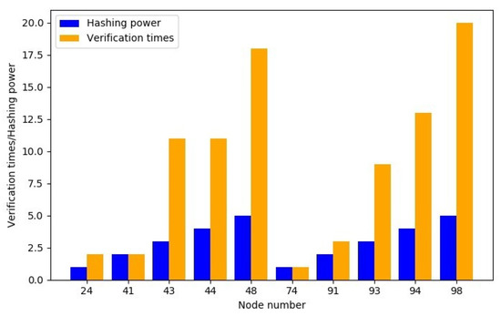 Appendix A.5. Simulation Results of 100 Nodes on PoS Blockchain