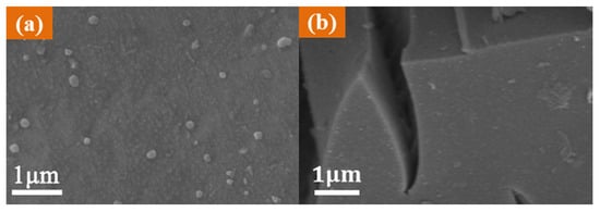 Figure 9. SEM images of (a) Ti plate and (b) Ti/RuO2-IrO2-SnO2 electrode after reaction.
