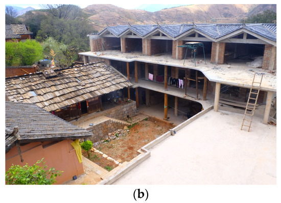 Mosuo dwellings have been undergoing a transformation, in which traditional and modern architectural elements are combined to form a hybrid. “China’s Traditional Rural Architecture: A Cultural Geography of the Common House” [22] was the first book in English to survey the evolution, variety, construction techniques, social context, and contemporary transformations of Chinese dwellings. It included over 200 photographs and drawings that drew attention to the richness of Chinese folk traditions, but the book is a preliminary glimpse, not a definitive treatment, of the topic. Research on Mosuo dwellings has focused on understanding and preserving the traditional aspects of Mosuo dwellings such as ‘house form’, ‘spatial layout’, and ‘decoration’ by conducting measurements and by mapping the original built forms [23,24]. However, few studies have looked at the changes and transformations of traditional ways of living and associated architectural forms in Mosuo villages in relation to modern influences. It appears that insufficient research has investigated the changes of Mosuo dwellings in transitions regarding the authenticity and building culture. In this respect, the purpose of this study is to attempt to establish a new framework for the future conservation of the architectural assets belonging to this unique vernacular architecture, so as to conserve the living culture, architectural form and cultural values embodied in Mosuo dwellings within the changing context of modernity.