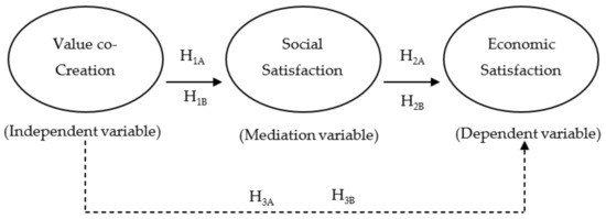 Mediation model of Social Satisfaction between Value Co-Creation and Economic Satisfaction.