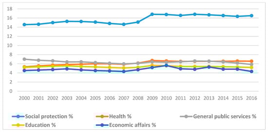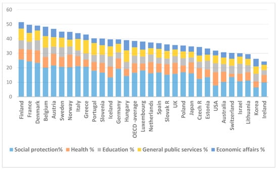 - OECD. Government expenditures by function (COFOG). In Government at a Glance 2019; OECD Publishing: Paris, France, 2019. [Google Scholar]